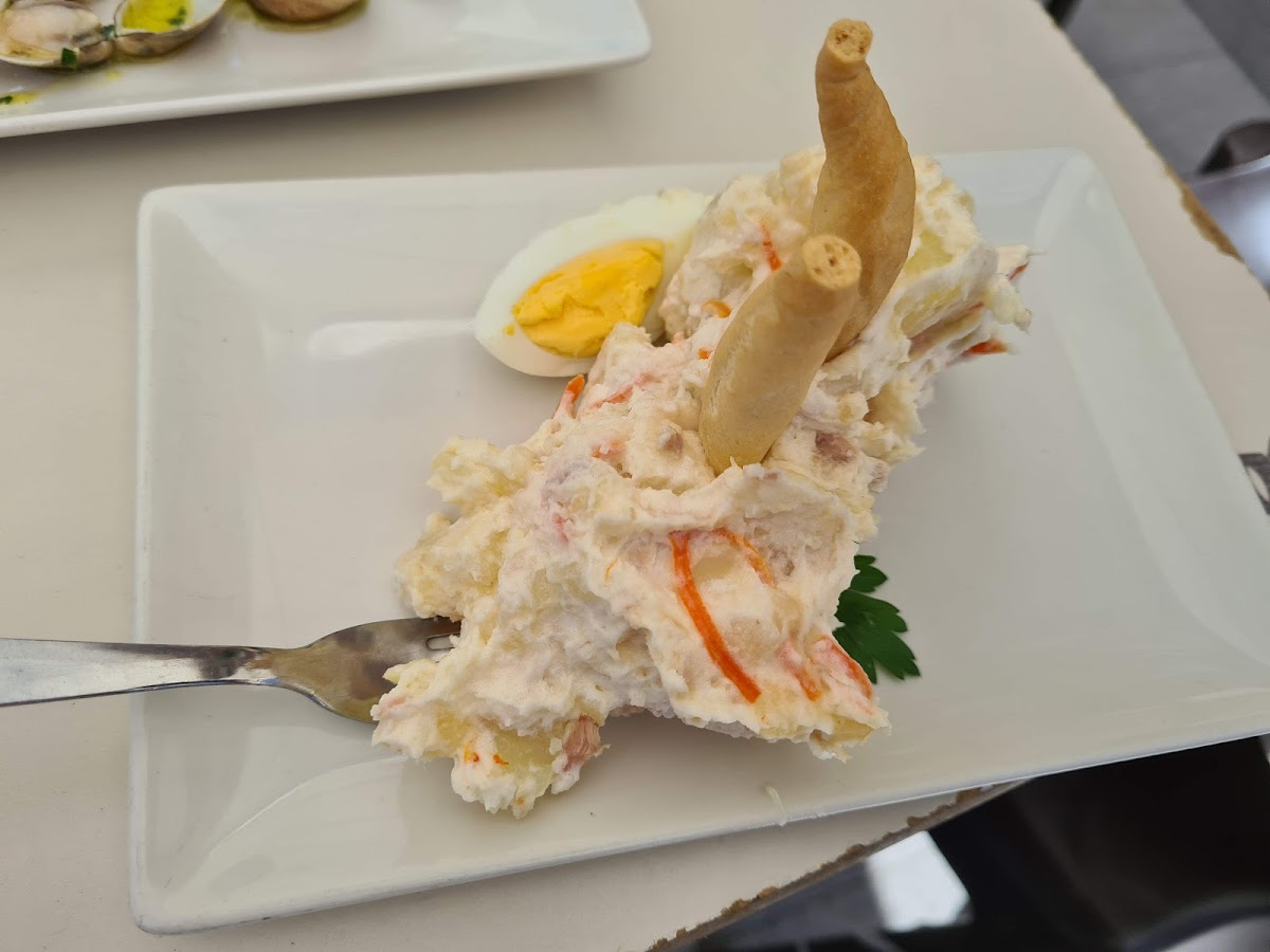 Perfecta ubicación con amplias posibilidades de aparcamiento. Cerveza más tapa 2,50. La primera tapa de arroz caldoso, muy rica; la segunda, de migas, un tanto decepcionante, como comer pan con pan. El servicio es rápido y atento.